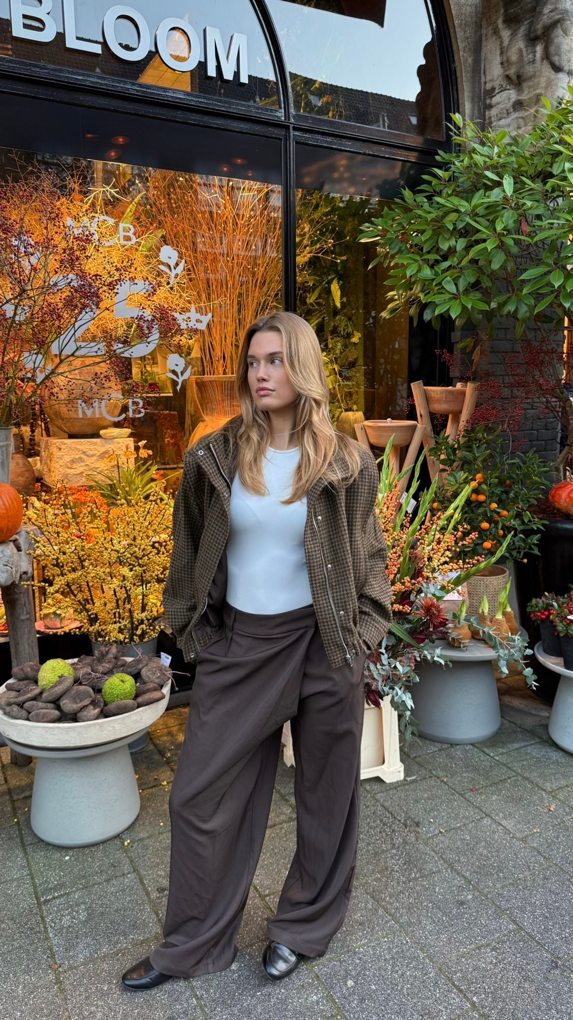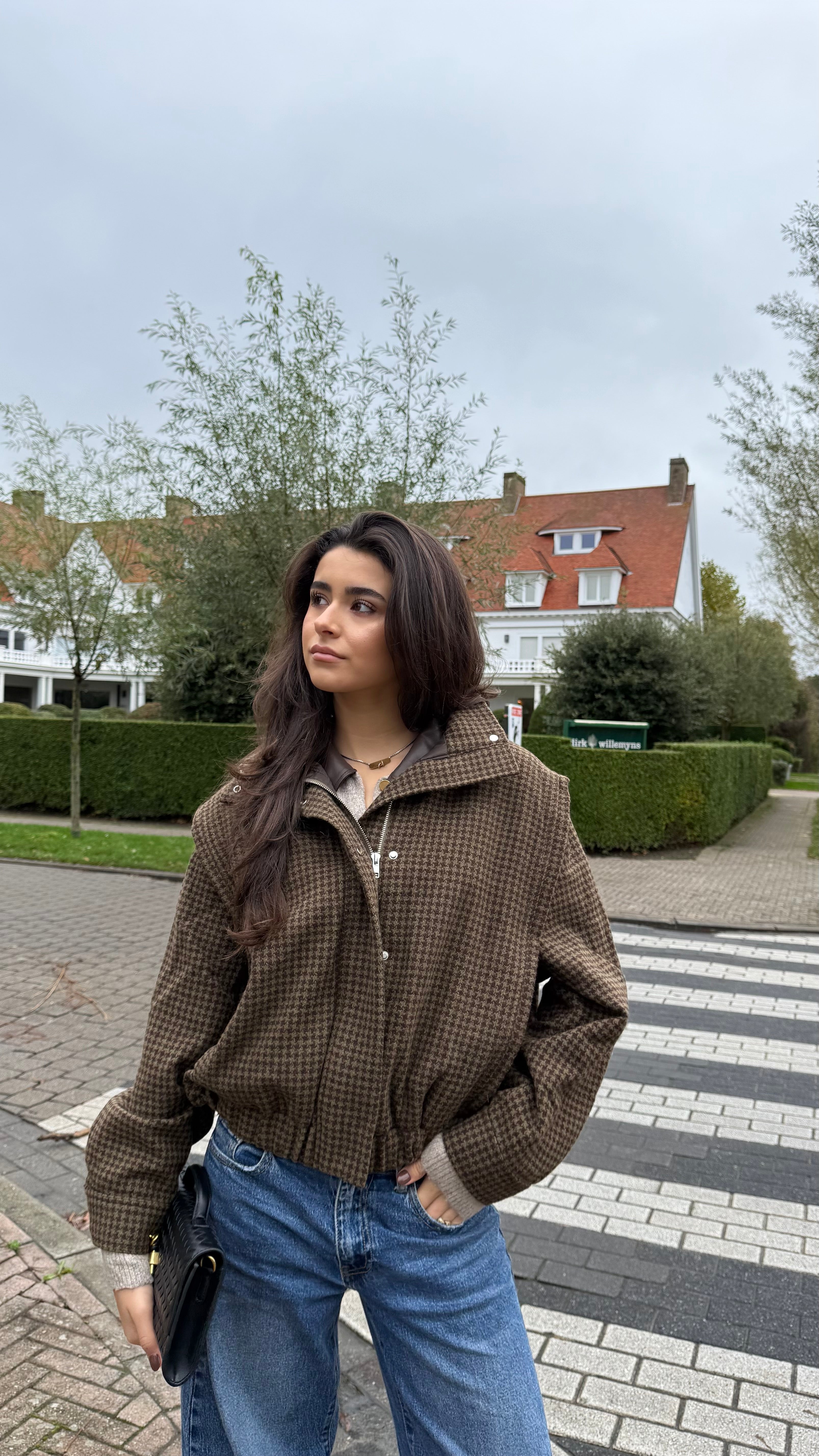 Ontmoet jouw nieuwe favoriete herfst essential. Deze prachtige jasje in chocoladebruine pied-de-poule is het perfecte balans tussen stijl en comfort. De relaxed fit, zachte textuur en subtiele structuur geven een elegante, effortless look. Draag ‘m casual met jeans of classy met een mooie pantalon dit item tilt elke outfit moeiteloos naar een hoger niveau. Wat ook een leuk is dat de mouwen er af geritst kunnen worden, zo heb je niet alleen een jas maar ook leuk als bodywarmer.