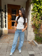 De light blue wash geeft je outfit een frisse, effortless vibe en is ideaal voor zowel casual looks met sneakers als een chique combinatie met hakken en een blazer. Een echte musthave voor dit seizoen.