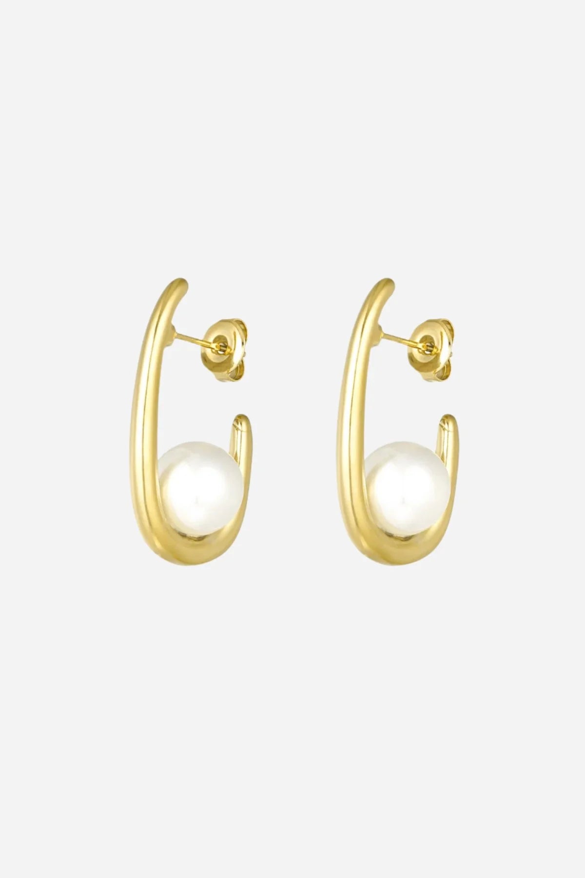 Captured by love! De Captured Pearl oorbellen hebben en elegant ovaal ontwerp met een glanzende parel die op een verfijnde manier is ingesloten. De combinatie van premium roestvrij staal en parel creëert een tijdloze look.