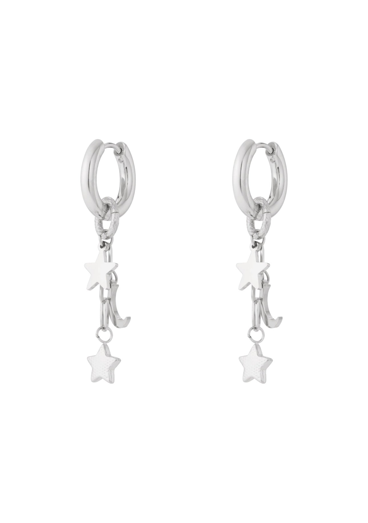 • Design: Gouden hoops met hangertjes van een maan, ster en planeet