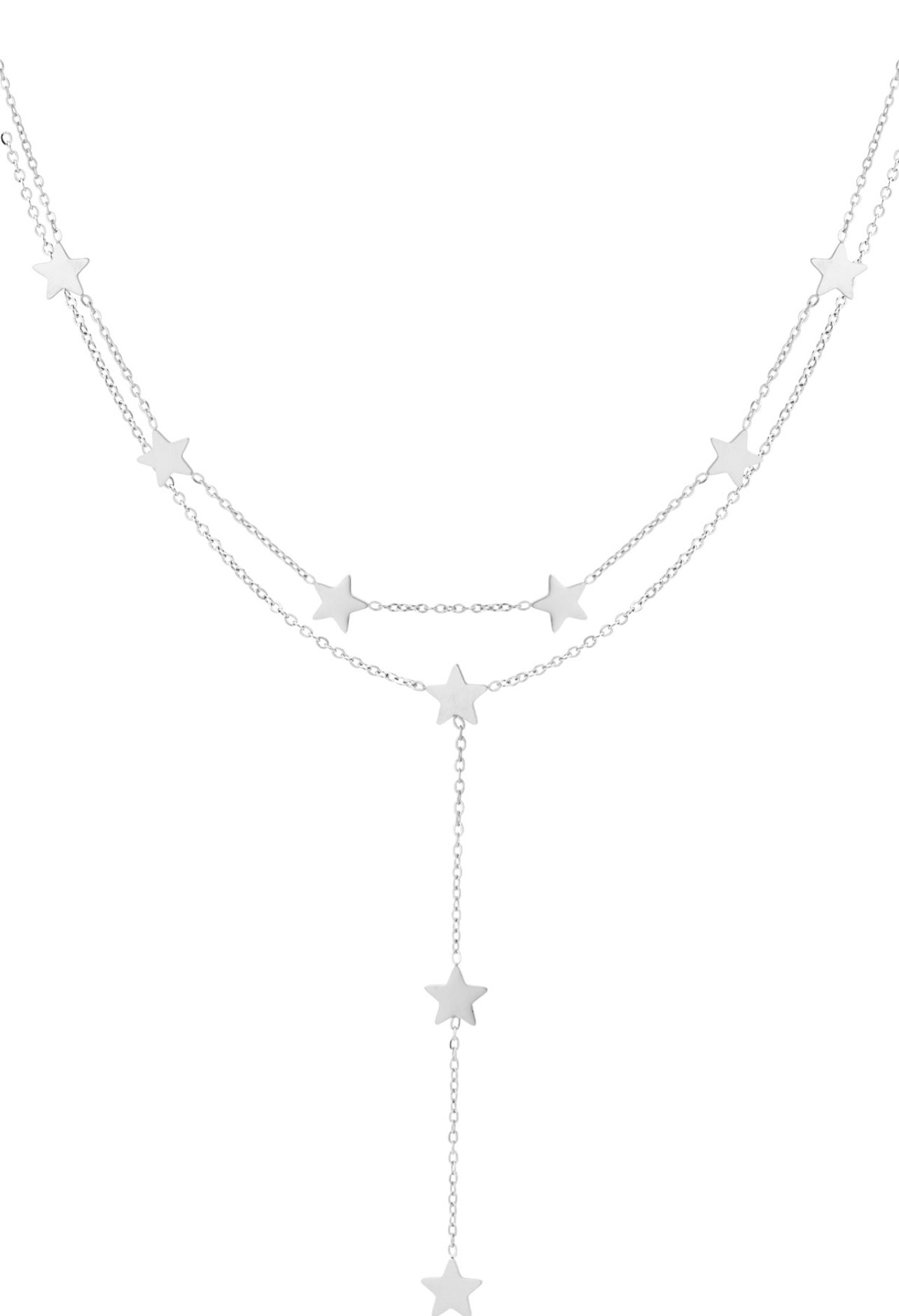 Funky star ketting in de kleur zilver. De ketting heeft een speelse en elegante look.