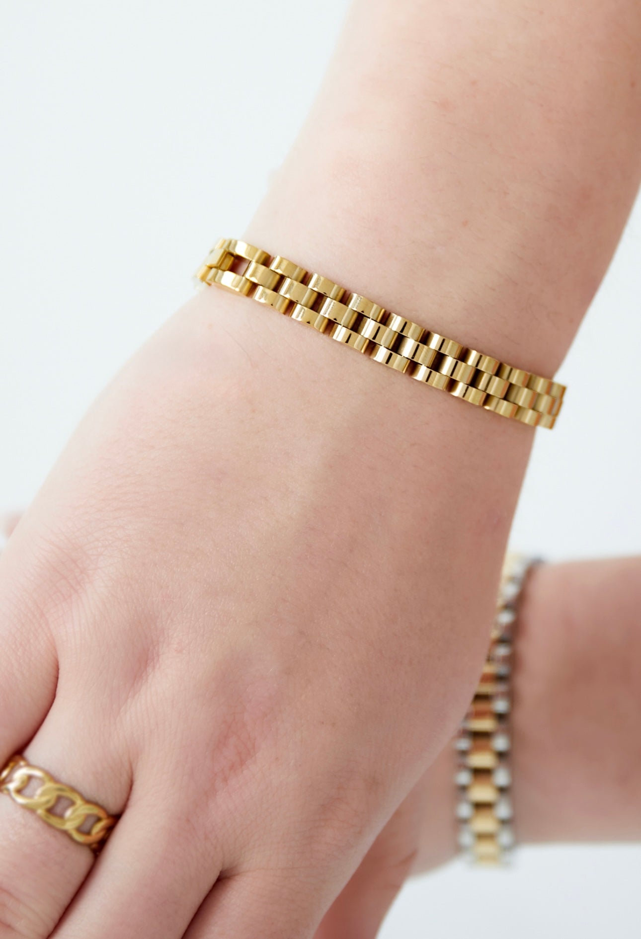 De Luxe Link Bracelet is een echte musthave voor jouw sieradencollectie. Dankzij de stevige schakels en de veilige sluiting draag je deze armband elke dag met vertrouwen. Gemaakt van hoogwaardig premium stainless steel en verkrijgbaar in goud, zilver of een chique bicolor combinatie.
