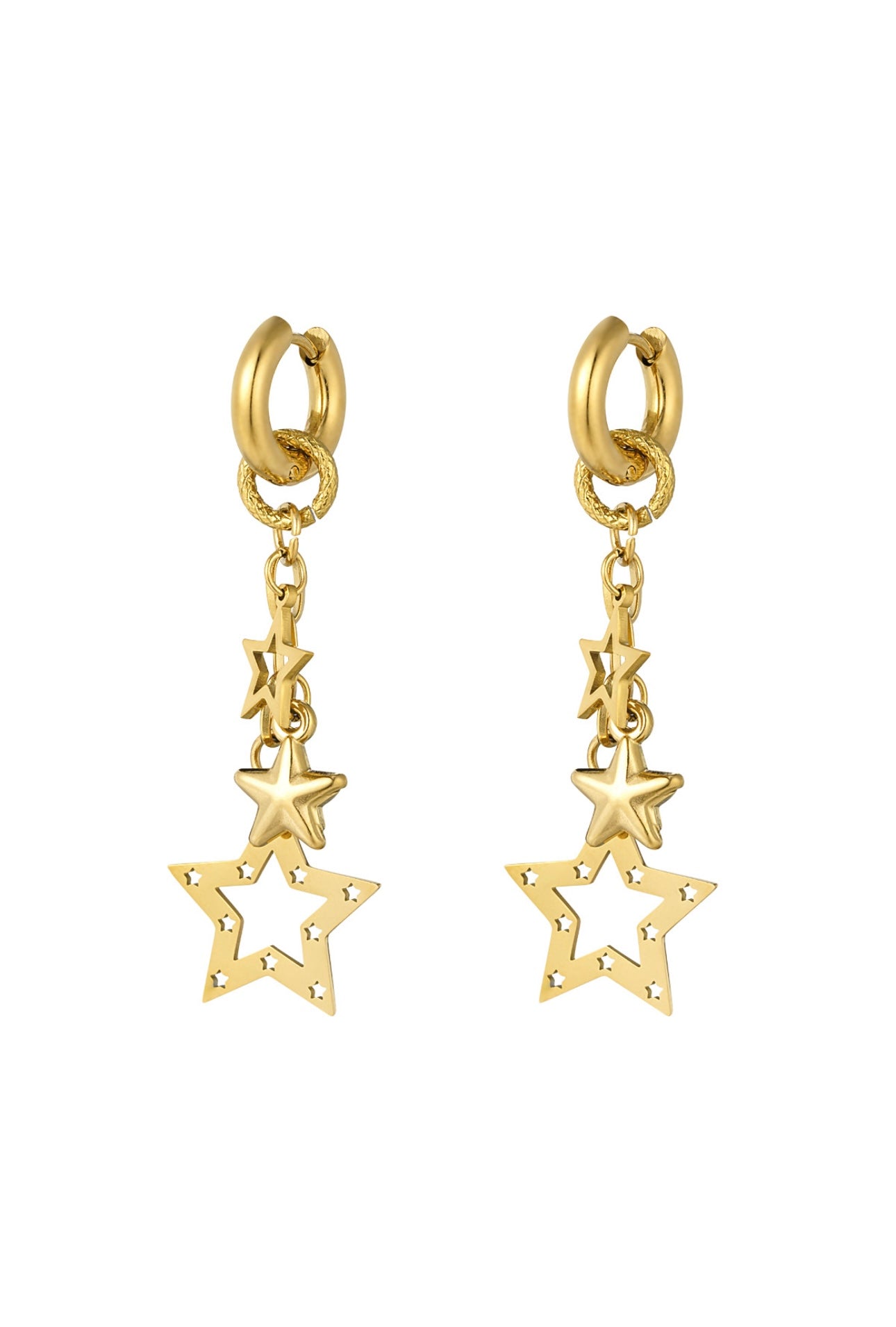 Super speelse ster oorbellen. De oorbellen hebben verschillende sterretje wat een speelse maar toch stoere look geeft! De oorbellen zijn verkrijgbaar in zilver en goudkleurig.