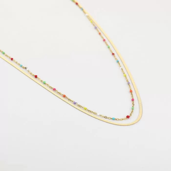 Laat je taille stralen met onze Rainbow Glow buik ketting: een verfijnde combinatie van roestvrijstaal en kleurrijke kralen. Perfect om te dragen op het strand, bij een festival of als subtiele eyecatcher onder je favoriete topje.