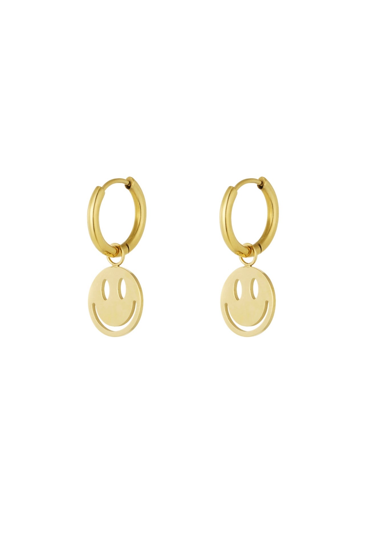 Super cute smiley oorbellen in de kleur goud.