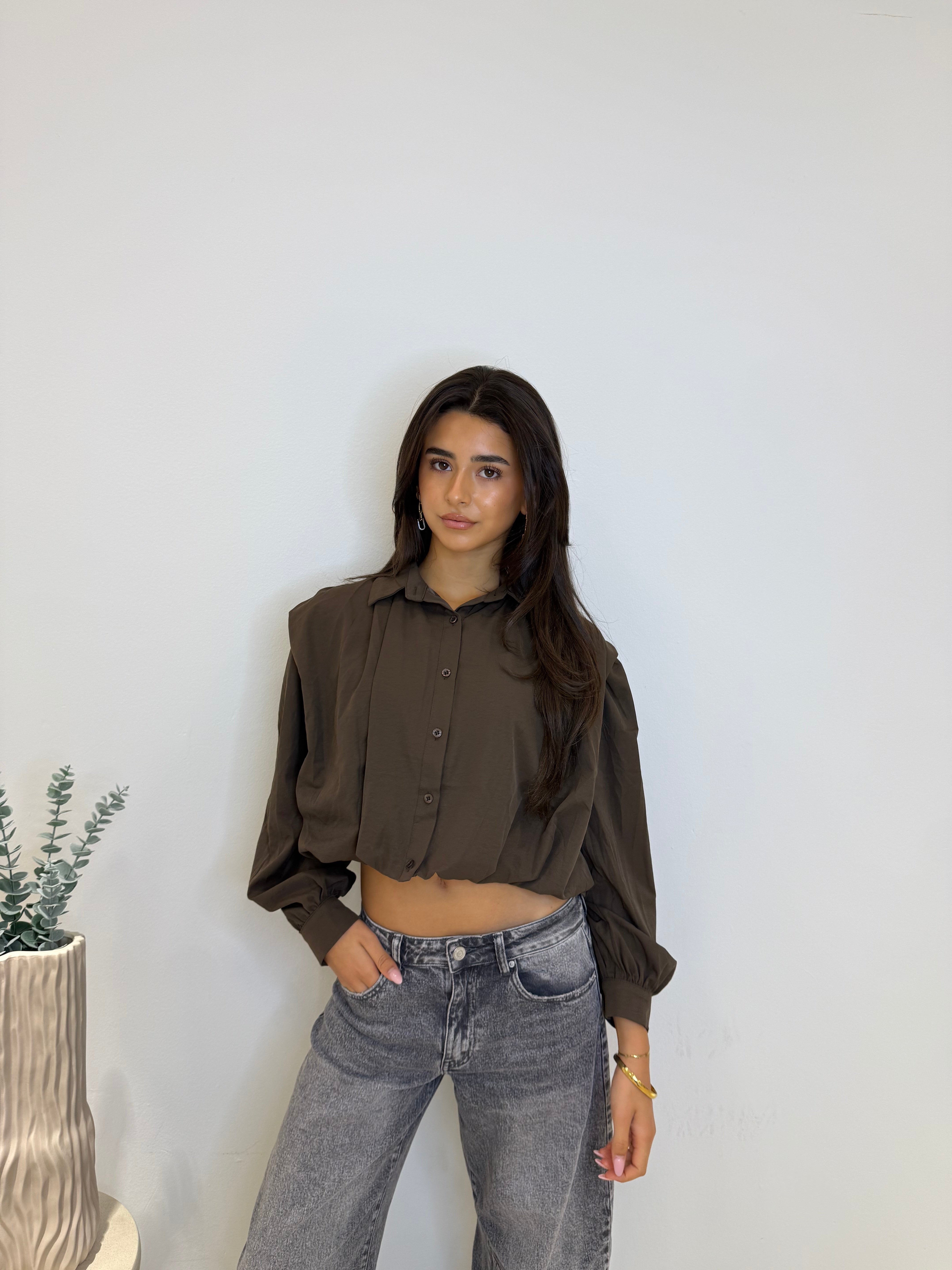 De Mae Blouse is een echte musthave voor dit seizoen. Met haar speelse ballonmouwen en cropped fit geeft ze elke look een stijlvolle, moderne touch. De donker taupe kleur maakt haar eindeloos te combineren van een casual jeans tot een classy pantalon.