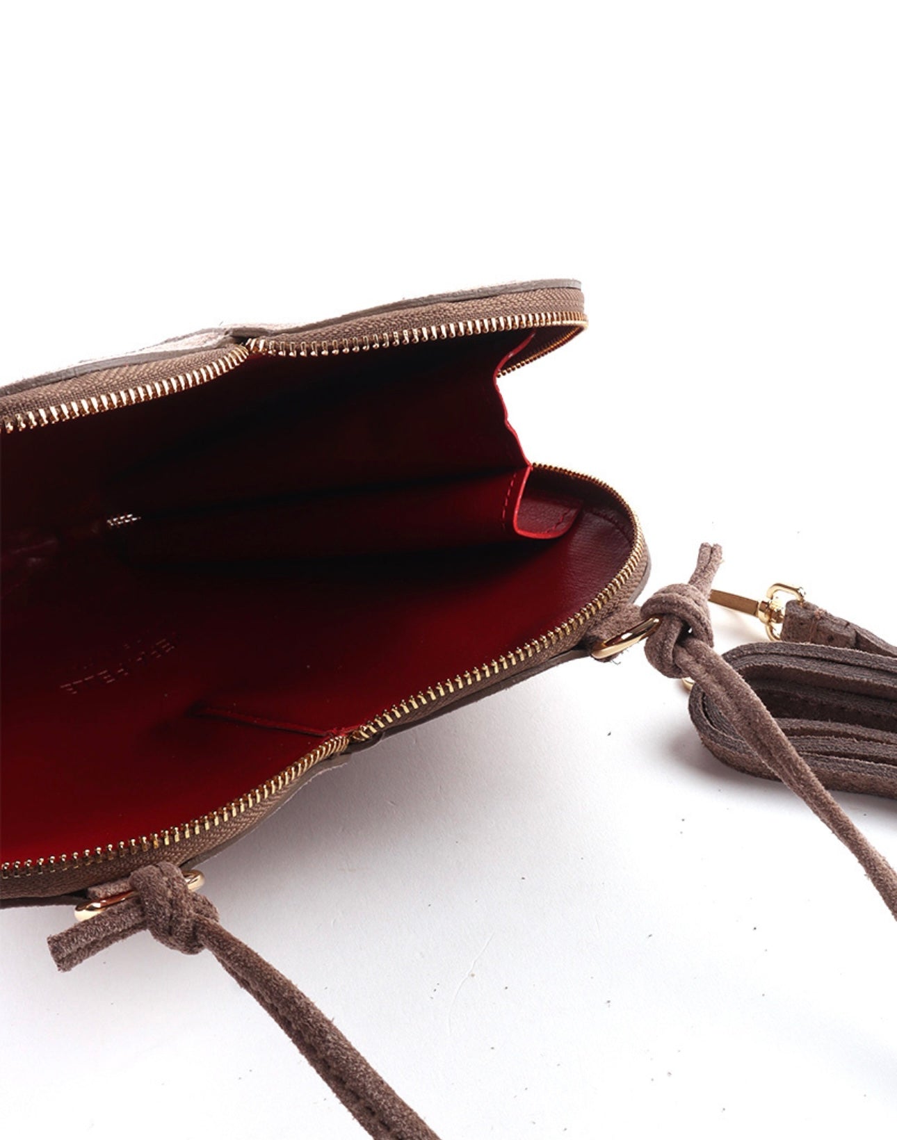 Dit schattige hartvormige tasje is gemaakt van zacht suède en heeft een romantische en speelse uitstraling. dankzij het gouden ritsdetail en het handzaam formaat is het de perfecte toevoeging aan iedere outfit. draag hem in de hand of crossbody met het bijgeleverde bandje. verkrijgbaar in 5 prachtige kleuren, zodat je altijd de perfecte match hebt.