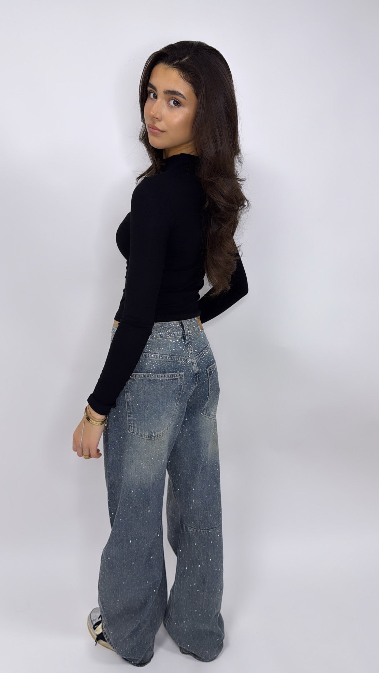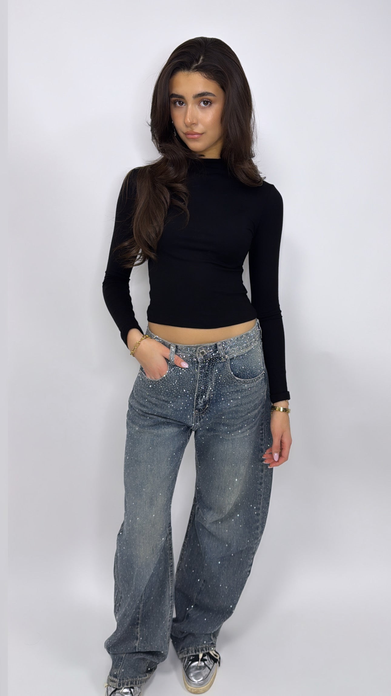Deze cristallen jeans is perfect voor feestjes, diners en kerst outfits maar ook leuk om casual te dragen. Combineer met een basic top voor een rustige look of met een body en blazer voor een stijlvolle party outfit.