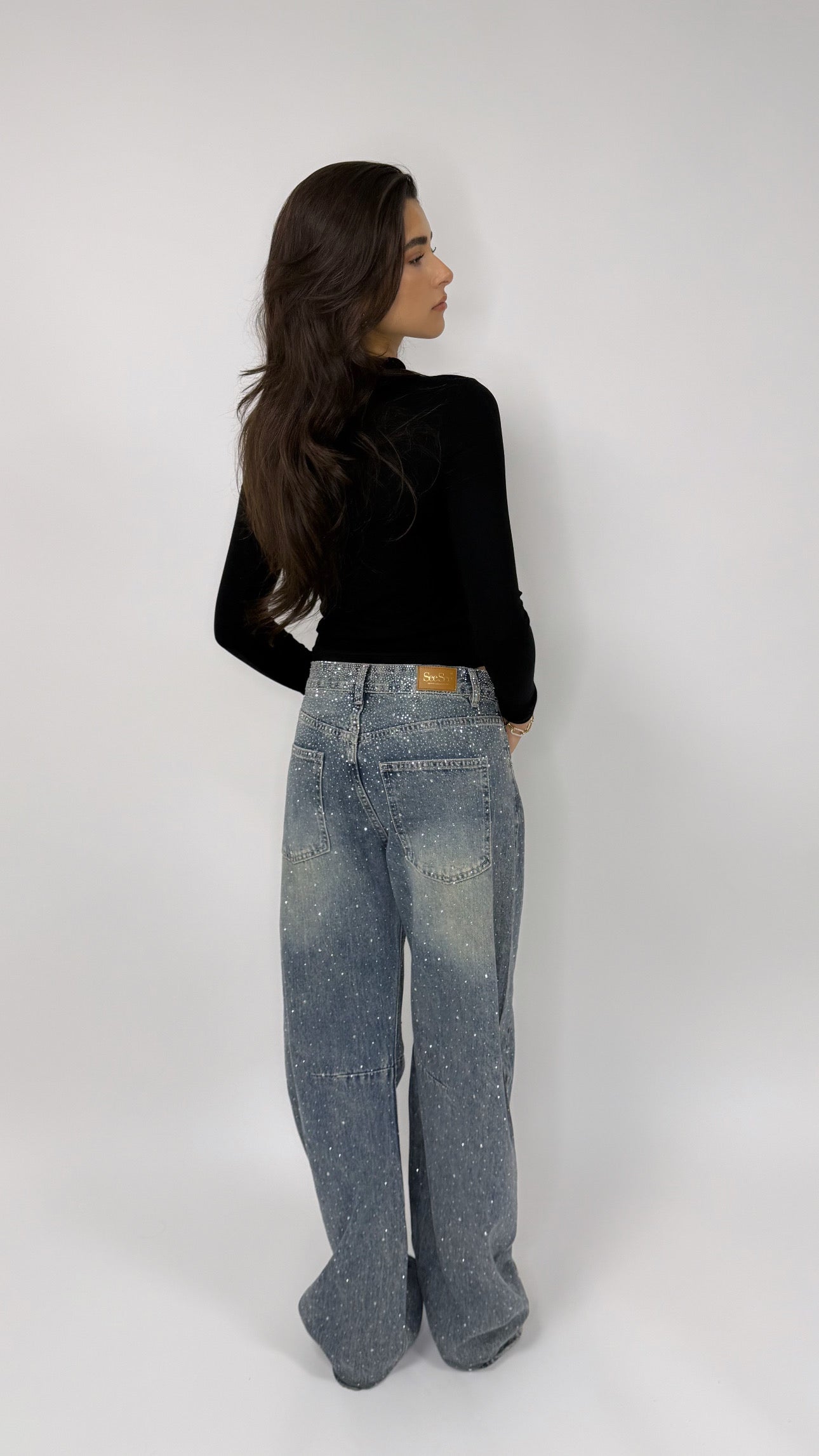 De cristal balloon jeans blue is een prachtig item uit onze party collectie. De blauwe denim is versierd met kleine cristal steentjes die over de hele broek zijn aangebracht. Het effect is subtiel maar toch opvallend waardoor de jeans een luxe en feestelijke uitstraling krijgt.