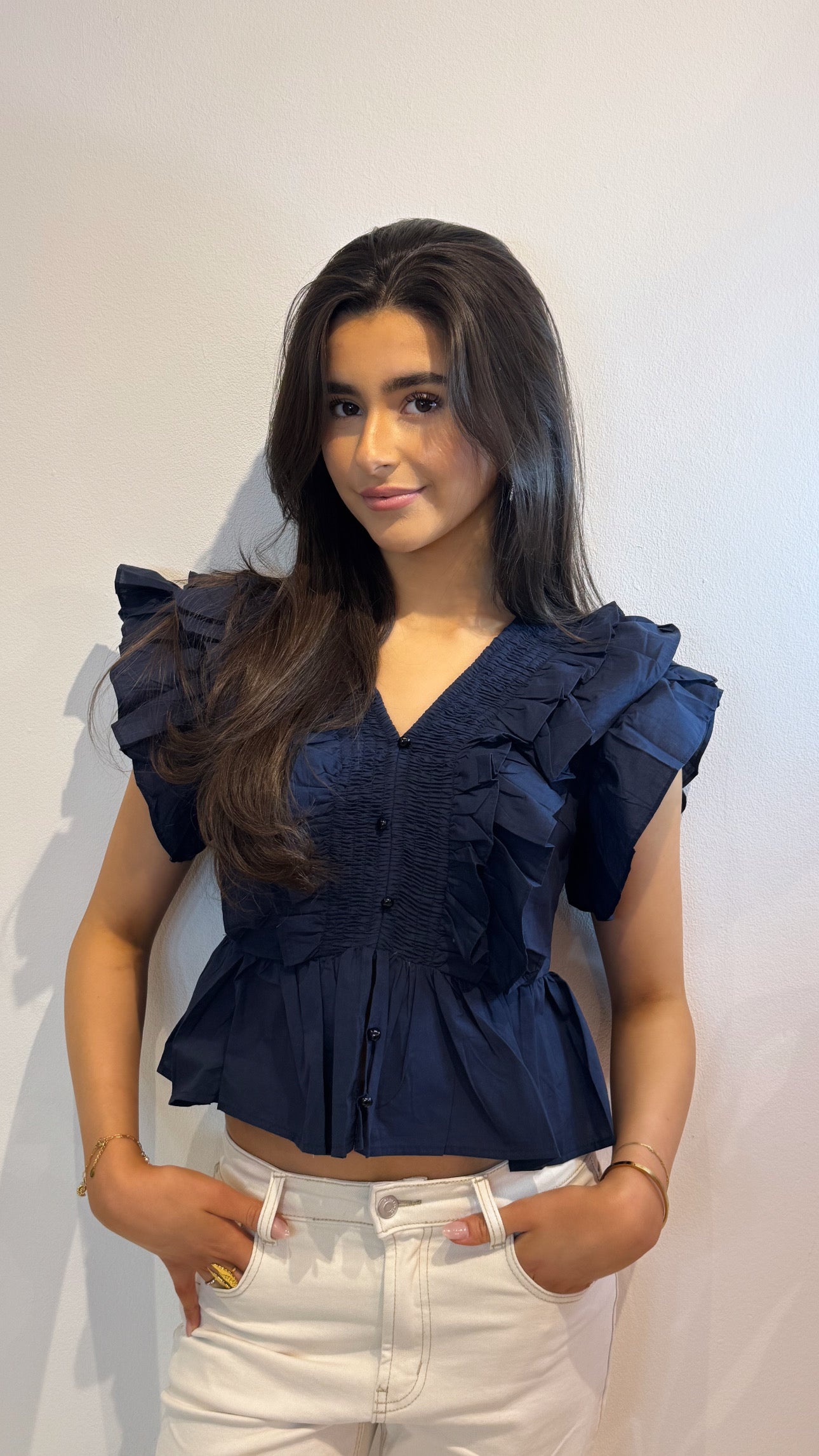 How cute is this Saint Tropez top from the Milly & Car summer collection! The top has adorable ruffles and small buttons. Pair it with your favorite jeans or a cute skirt.