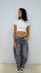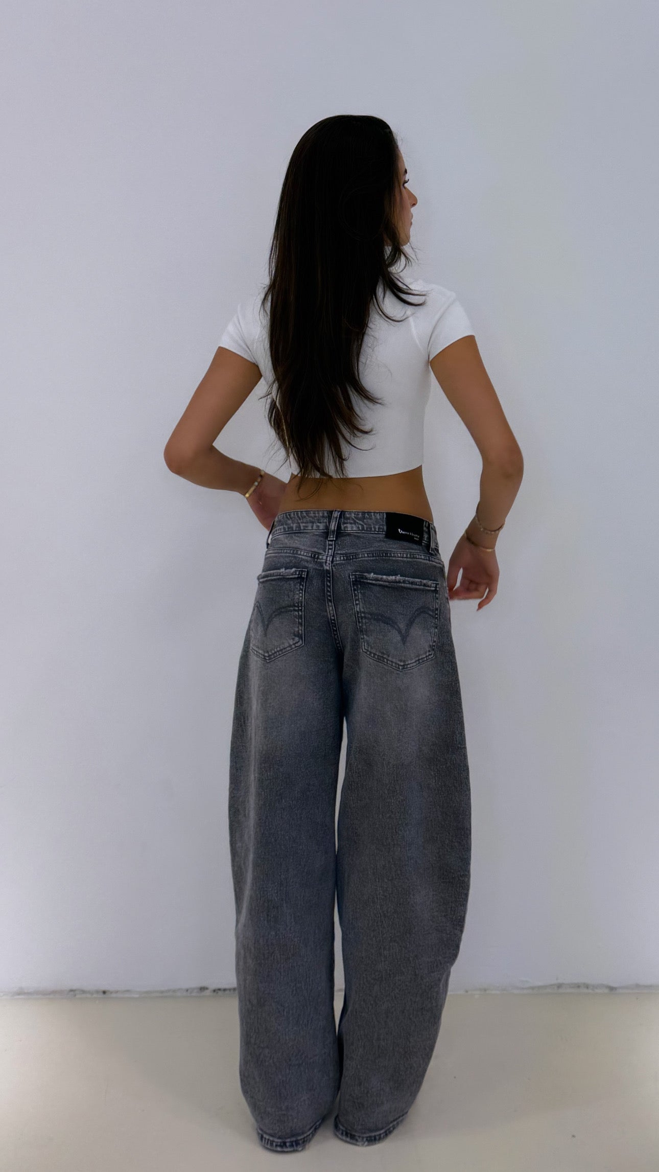 The Skye jeans are the trend you can't miss. With their relaxed balloon fit and gray washed look, these jeans have the perfect street style vibe. Easy to pair with your favorite basics or an oversized jacket for that effortlessly cool look.