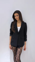 Meet your new go-to classic. Deze zwarte blazer heeft die perfecte tailored fit waar je figuur prachtig in uitkomt. De lengte is ideaa net lang genoeg voor over een shortje, maar ook superchic op een jeans. Carmen combineert ’m met een kanten body top voor een classy & feminine touch (and we’re obsessed).