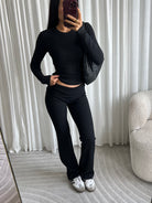 The Serenity set in classic black is the perfect blend of timeless and comfortable. Made from a soft, stretchy fabric that's incredibly comfortable and flattering. Pair it with sneakers for a casual vibe or wear it with heels and a blazer for a sophisticated touch.