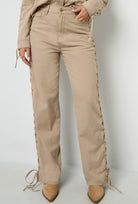 Laced straight leg jeans - Beige