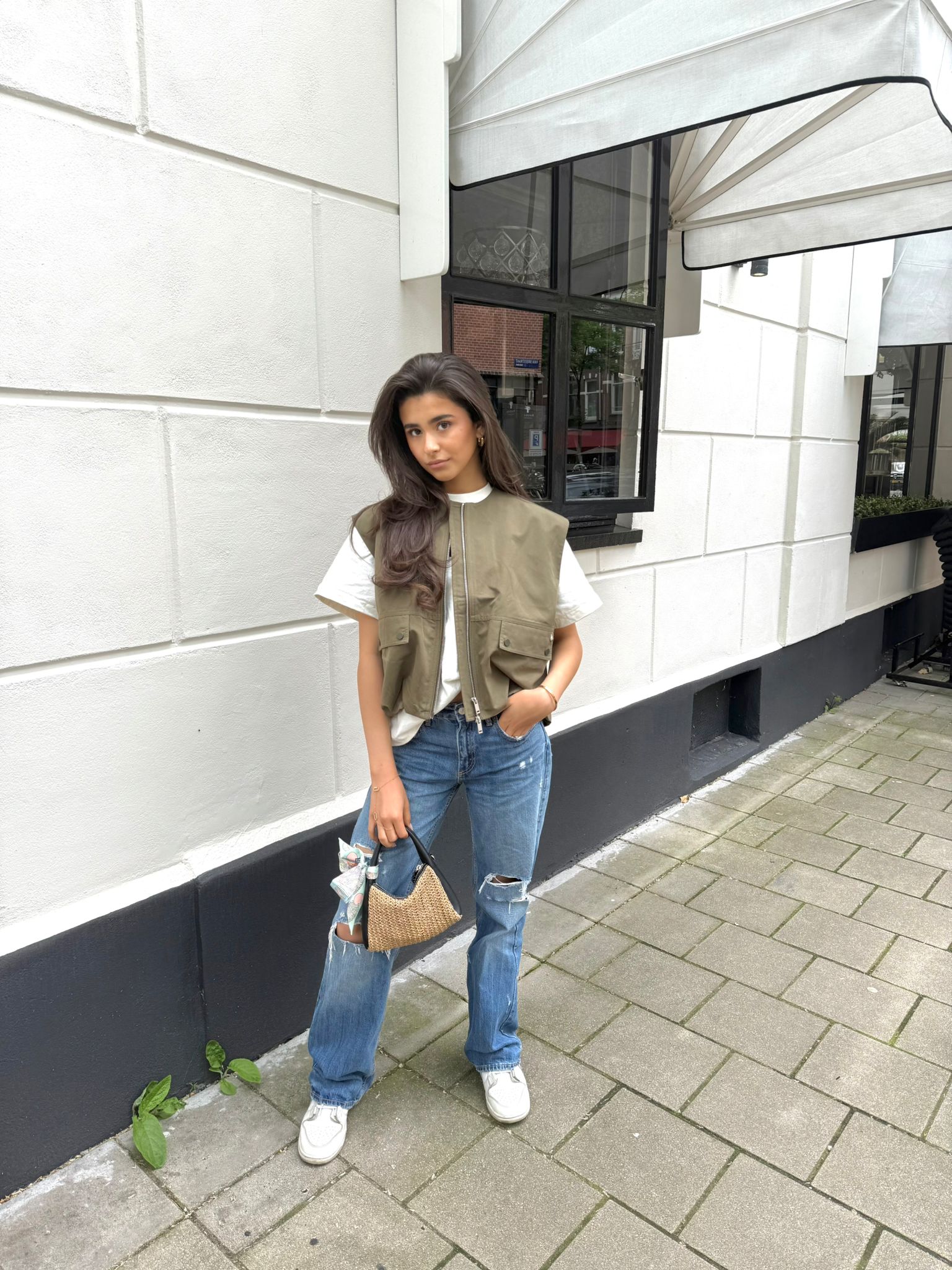 Less is more – and this sleeveless, oversized bomber proves it. Made of a lightweight, breathable fabric, this jacket is the perfect layer for sunny days and balmy evenings.