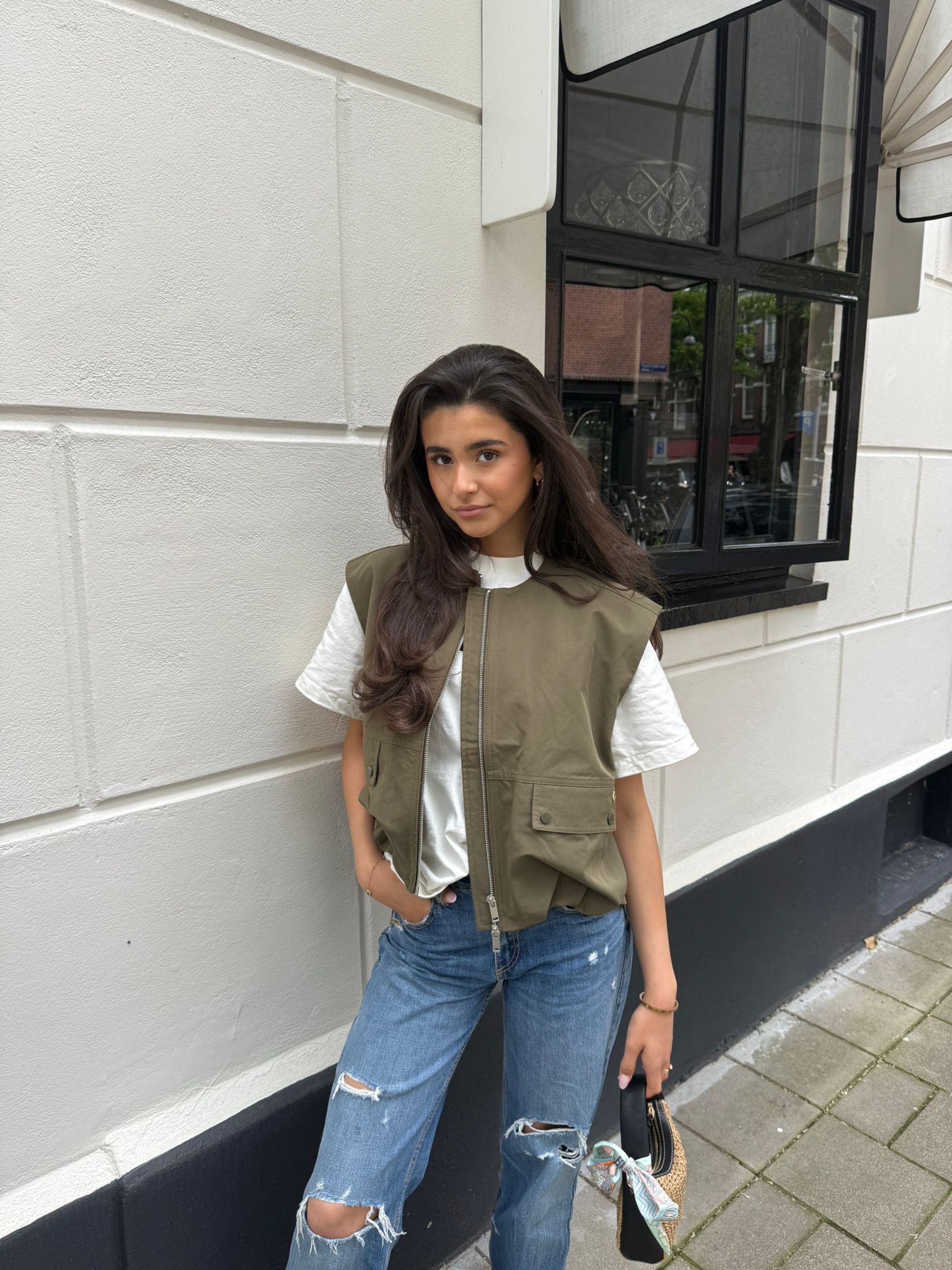 The oversized fit gives your outfit a relaxed street style vibe, while the sleeveless design adds an edgy touch. Easy to style, lightweight to wear – your new go-to piece this summer.