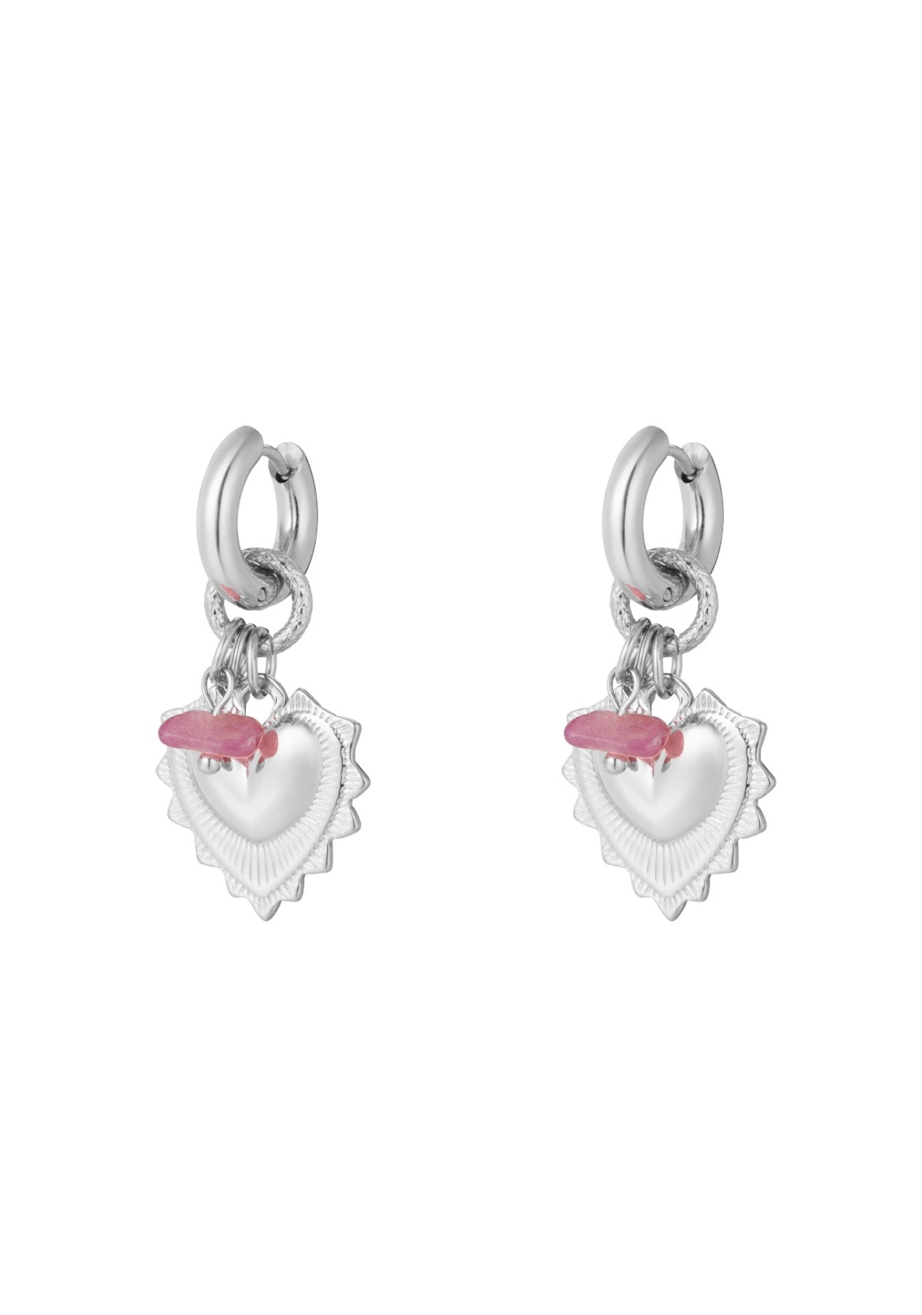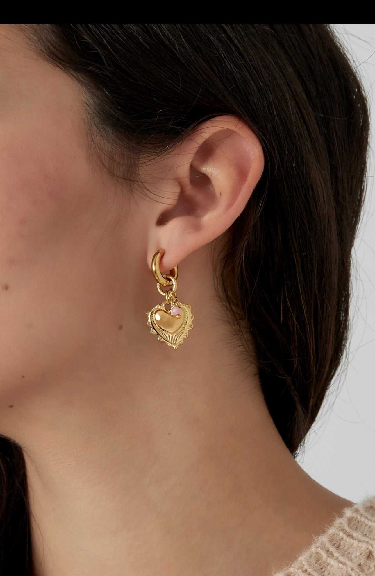 How cute are these heart earrings with pink stone! The heart earrings have a playful look and are made of stainless steel. Also available in gold.