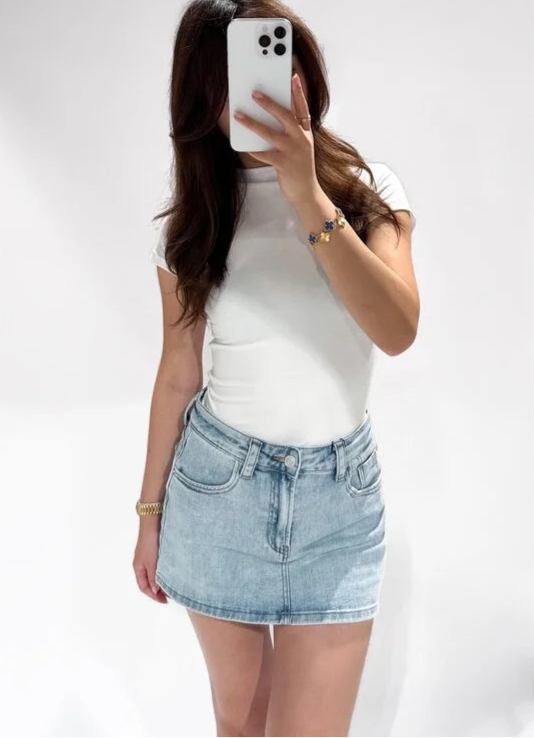 Perfect denim skirt from the Milly & Car summer collection. It pairs beautifully with one of the summer tops.