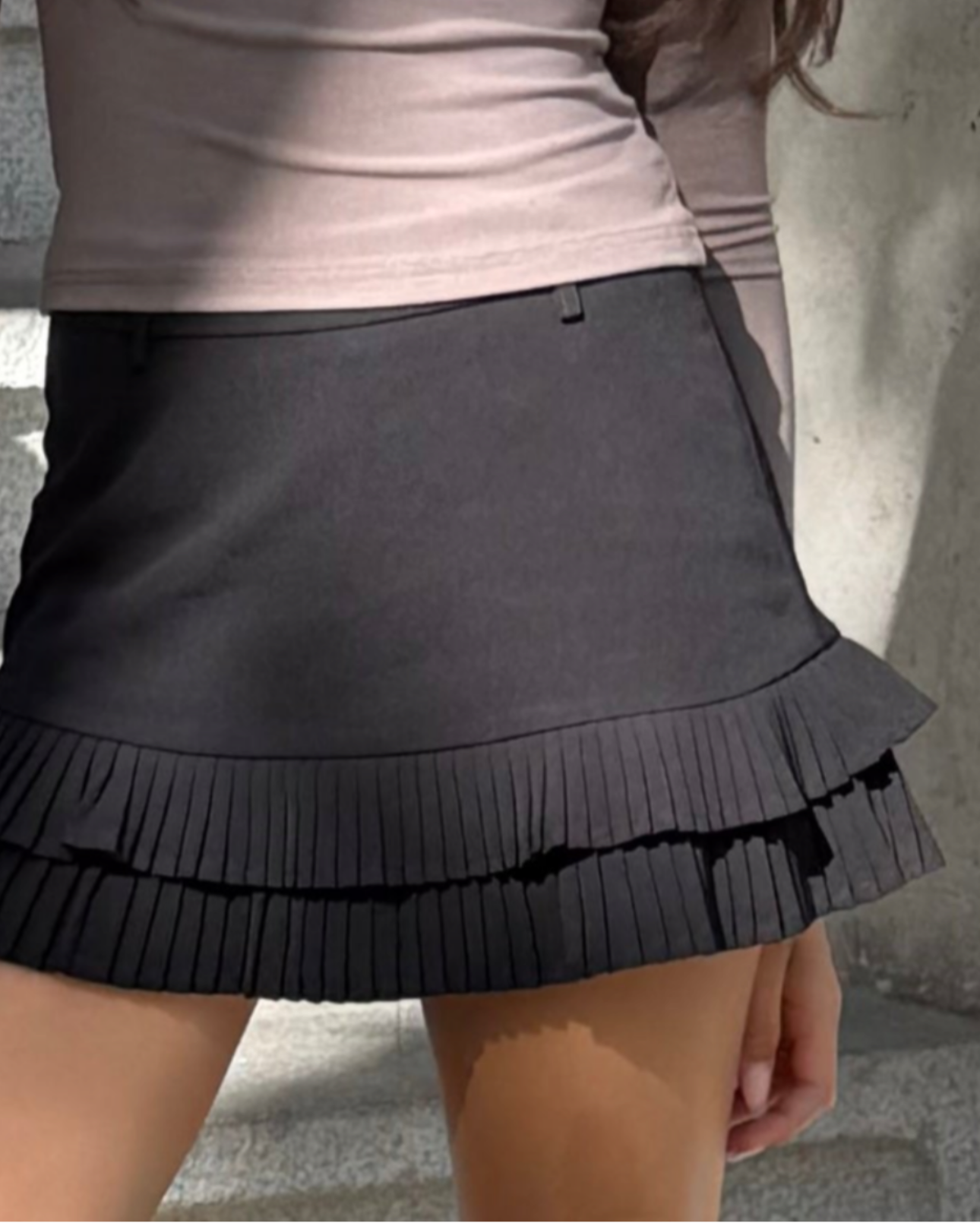 The Élise skirt is a black skirt with a playful pleated detail at the hem. Perfect for wearing with boots or sneakers and easy to style for school or a day out. A must-have for a young, classy look.