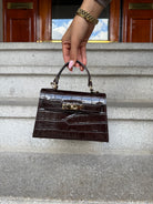 The Paris Croco Bag in Deep Brown from our Fall collection is crafted from genuine leather and features a glossy crocodile texture. The gold hardware and sleek design give this bag a luxurious look. Thanks to the detachable strap, you can carry it both elegantly by hand and crossbody for a modern Fall look.