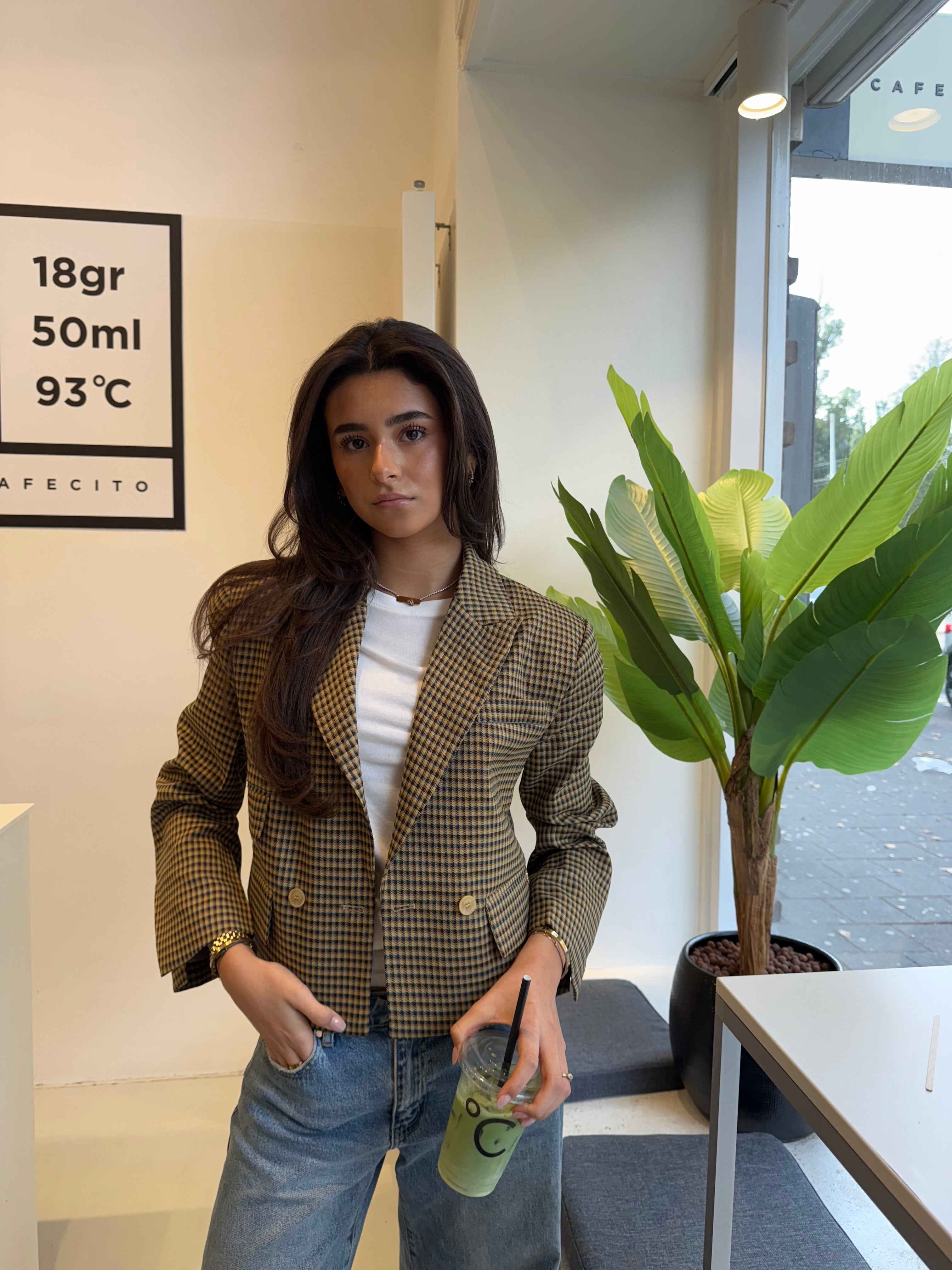 De blazer die jouw herfstlook een instant upgrade geeft. Met zijn unieke amber-gele ruit en moderne fit is dit dé musthave van het seizoen. Combineer casual met jeans en sneakers of ga voor classy met hakken en een pantalon.