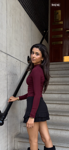 The Paris Bordeaux top from our fall Paris collection is a true must-have for this season. The deep burgundy color instantly adds elegance to your look. Thanks to the stretchy fabric, the top is comfortable and fits beautifully. Perfect for casual wear with jeans or a chic look with a skirt or blazer.
