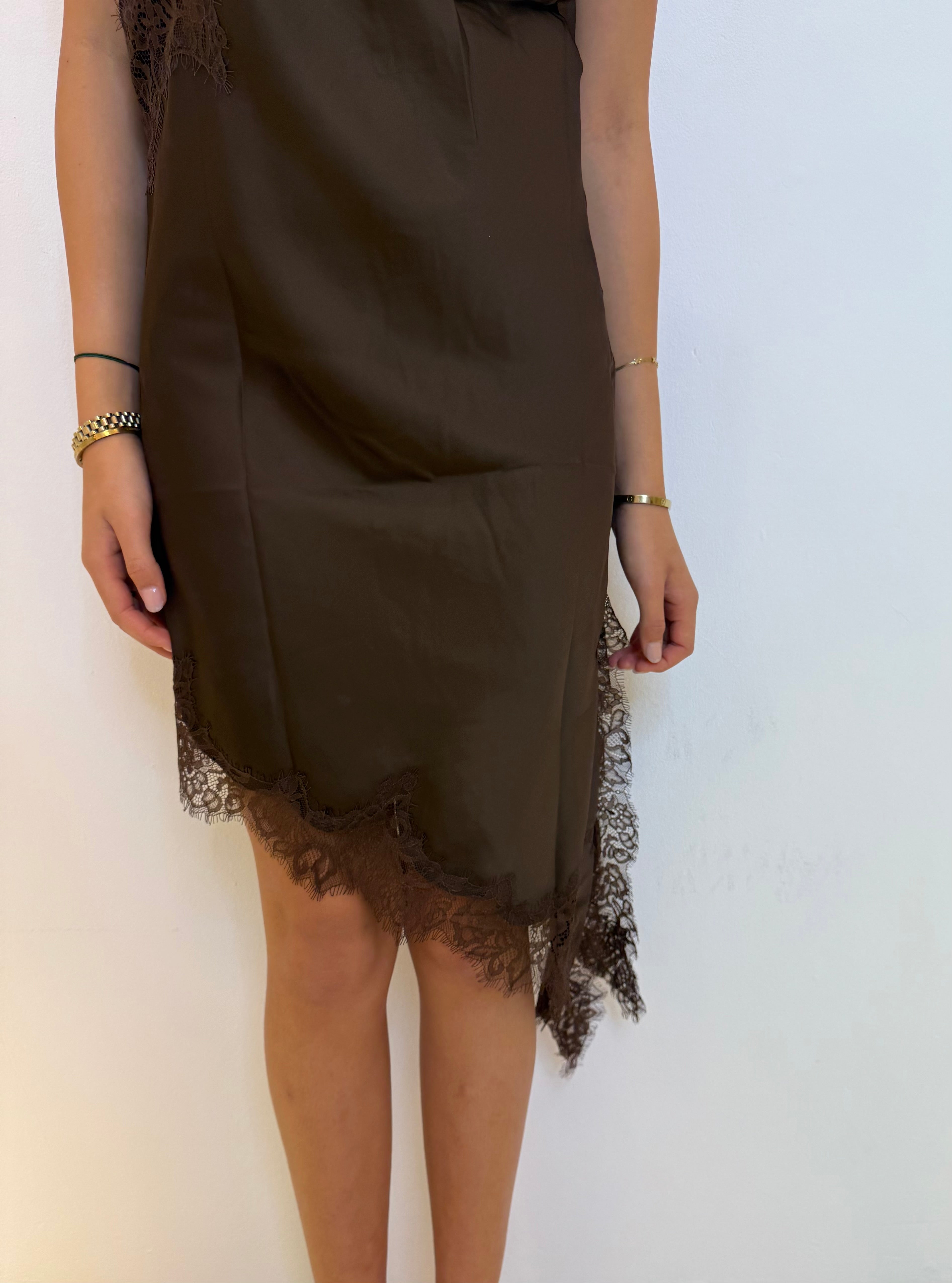 Silky lace dress - Bruin